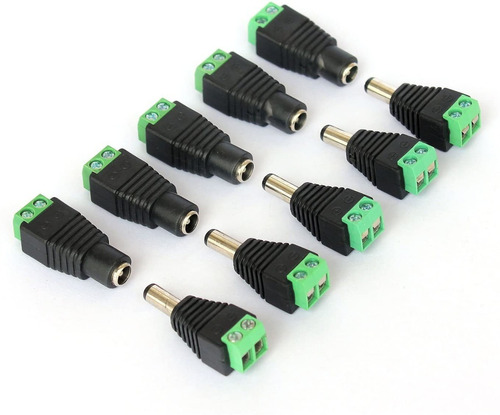 10 Pares De Conectores Dc Jack Bornera Cctv Hembra + Macho