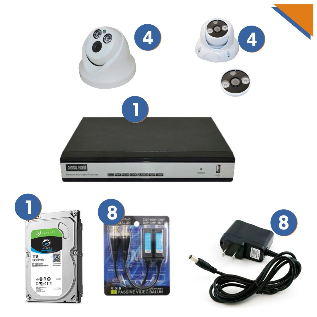 DVR 16CH – SOPORTA 2 HDD 8 CAMARA DOMO AHD – 1/4 CMOS 1.0M (720P)(4 EXTERIOR 4 INT), DD 1 TERA,8 BALUNS 8 FUENTES
